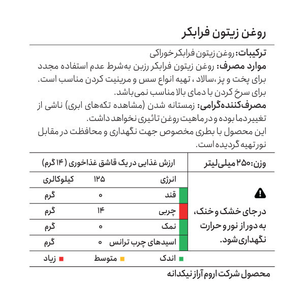 روغن زیتون بابو فرابکر رزبن ۲۵۰ میلیلیتری یک روغن زیتون باکیفیت و کاملاً طبیعی است که به روش پرس سرد تولید شده و ارزش غذایی بالایی دارد. این روغن سرشار از اسیدهای چرب مفید، آنتیاکسیدانها و ویتامین E بوده و برای حفظ سلامت قلب، پوست و سیستم گوارش بسیار مؤثر است. طعم ملایم و عطر طبیعی آن، این روغن را به گزینهای عالی برای سالاد، غذاهای سرد و رژیم غذایی سالم تبدیل میکند. اگر به دنبال روغن زیتونی خالص و مناسب مصرف روزانه هستید، این محصول انتخابی مطمئن است. روغن زیتون بابو را میتوانید با تضمین کیفیت از ناتریا شاپ تهیه کنید.